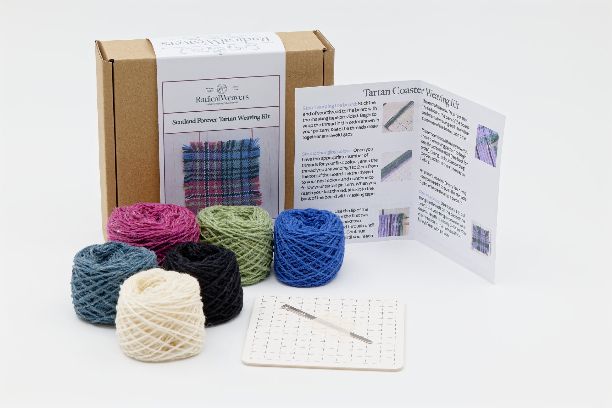 Dive into the art of hand weaving with this mini tartan weaving kit, perfect for creating your own authentic tartan squares. With everything you need to hand weave four 8 x 8 cm coasters, this kit offers a creative journey into traditional Scottish craftsmanship.