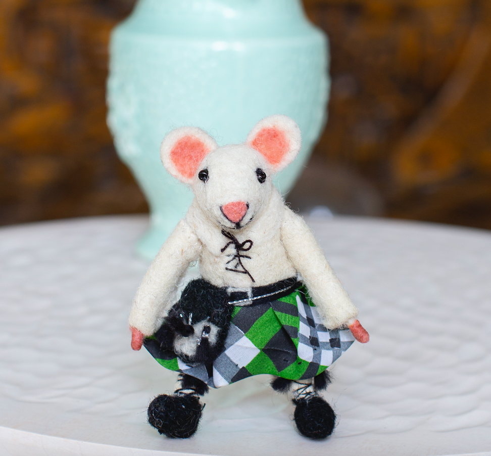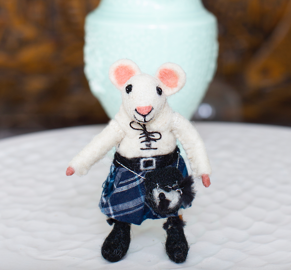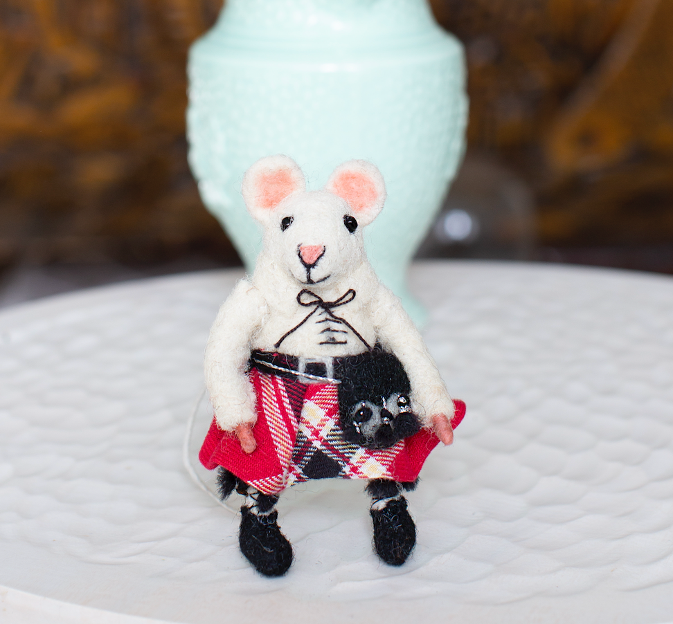 Aye matey, meet the Scottish kilted mice! It’s a dreich day out there but this brave kilt wearing mouse doesn't mind getting his little legs out! The perfect gift for a Scotsman with tartan heritage! Each Sew Heart Felt mouse is skilfully crafted by needle felting teeny layers of loose wool fibres, creating a sculptured and realistic little animal. Every Tiny Animal has a character of its own and is a truly artisan piece.