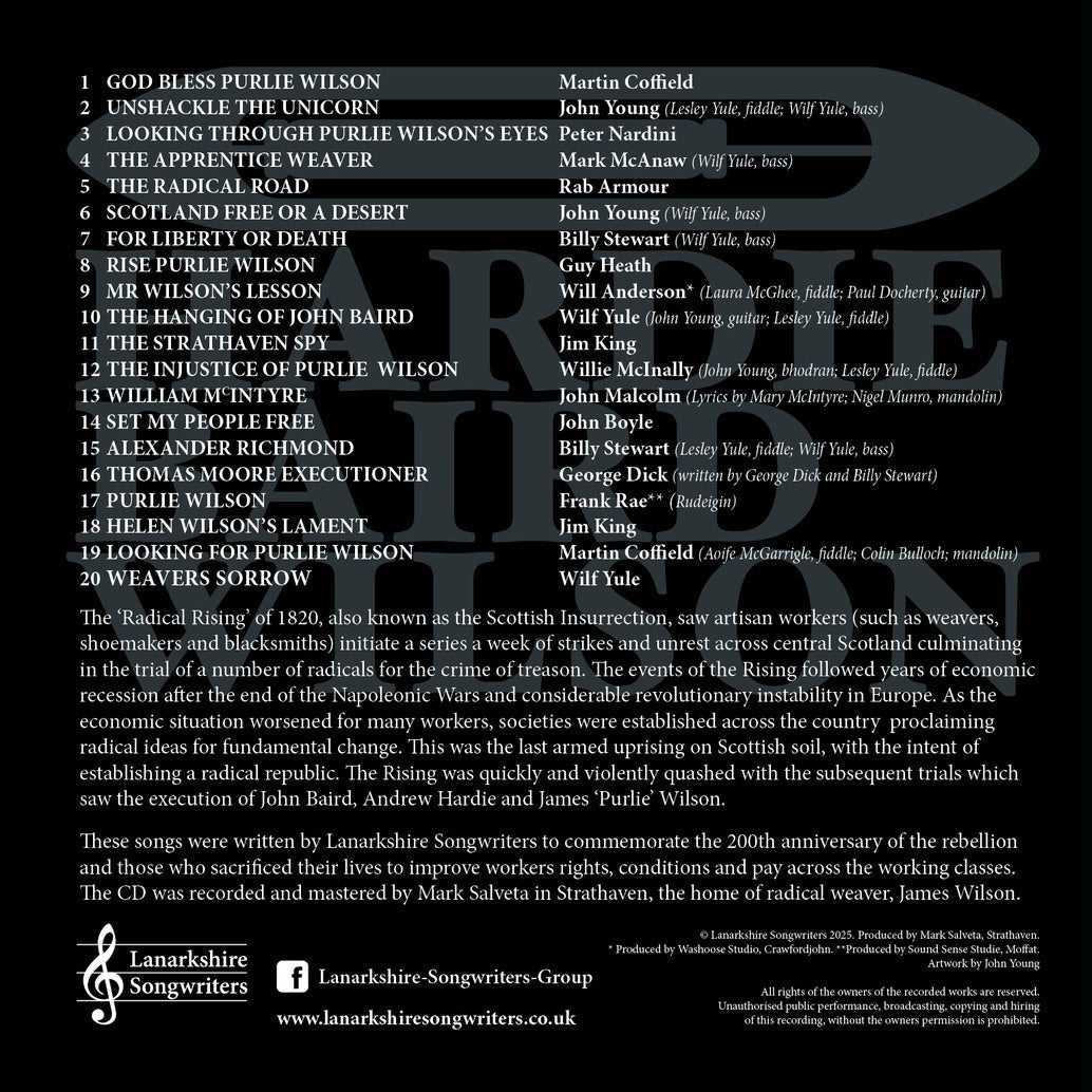 '1820 Songs of Rebellion' is the latest Lanarkshire Songwriters CD, released recalling local connections with historical events. The group launched the CD formally at the Townhill in Strathaven, home of James 'Purlie' Wilson after the summer break. Based in Stonehouse, Lanarkshire the group has been active now for 28 years writing songs, performing and recording.