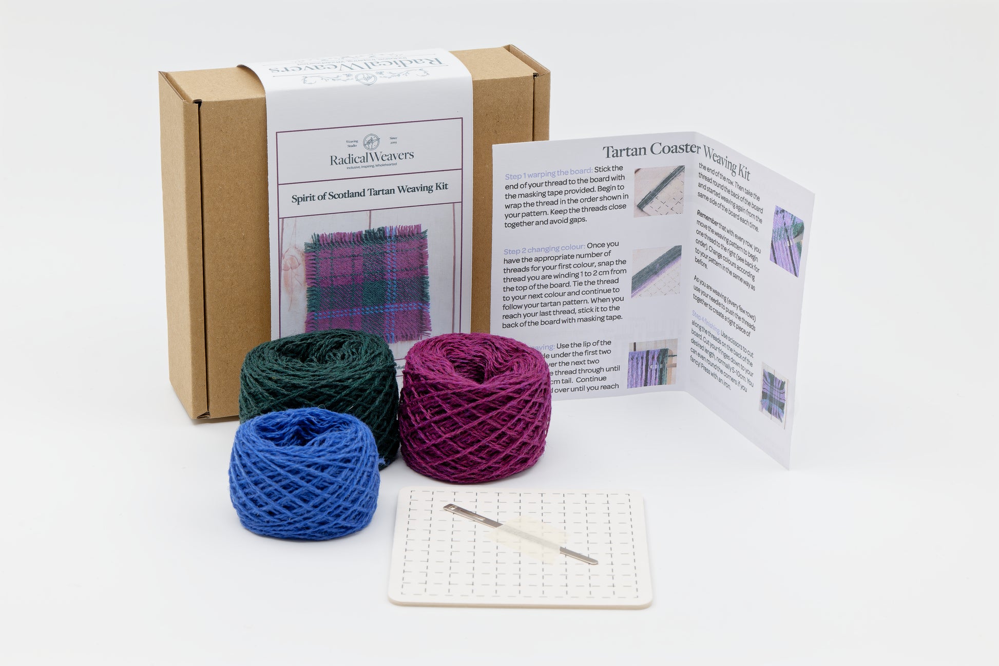 Our step-by-step instructions guide you through a classic Scottish tartan pattern and teach you the timeless twill technique. The kit includes high-quality Scottish Shetland pure wool, a specially designed bodkin needle for smooth weaving, a sturdy weaving board with guides, and our unique instructions featuring an interpretation of the iconic Spirit of Scotland tartan.