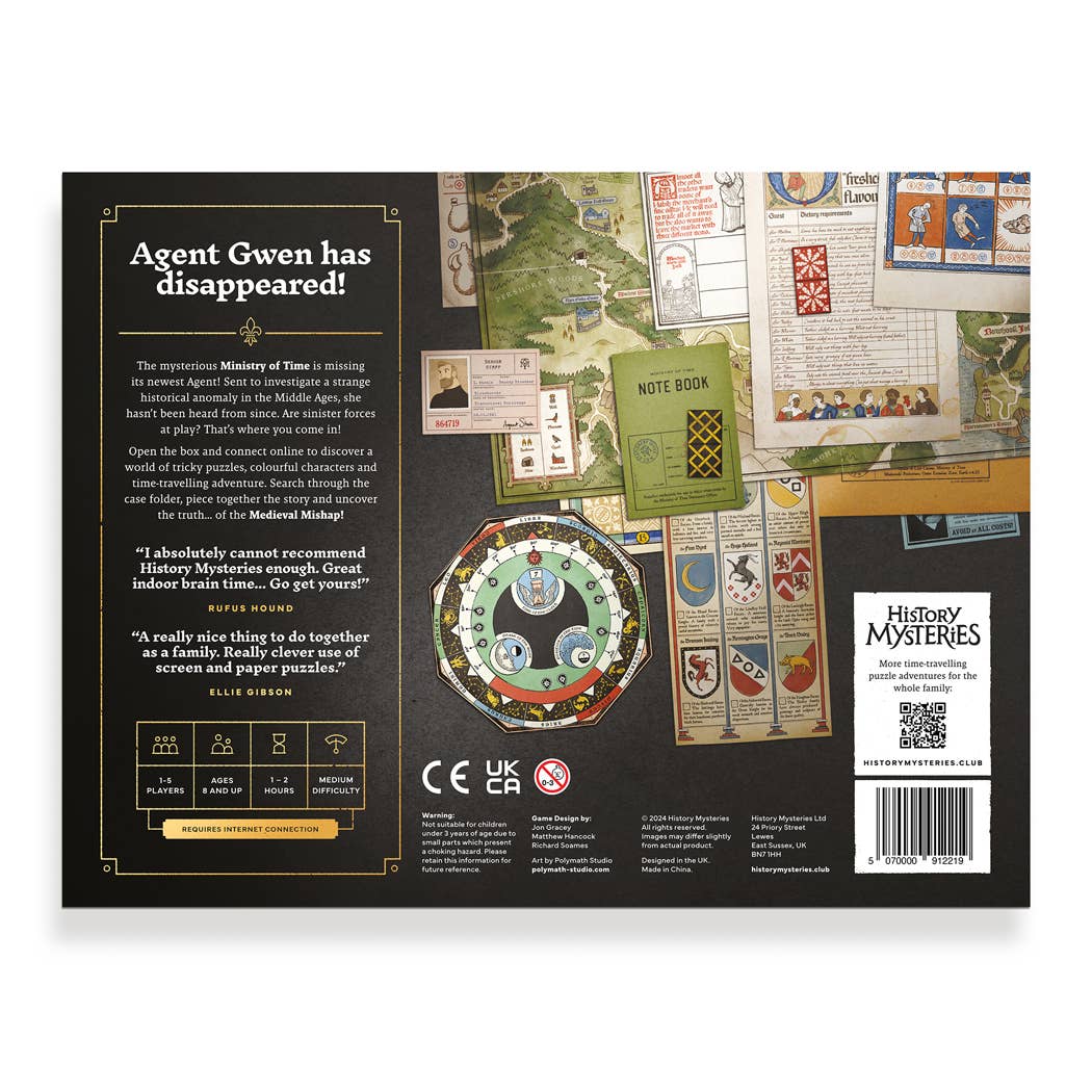 Agent Lance Steele needs your help! His newest recruit was sent back through history to investigate a strange anomaly, and they haven’t been heard from since. Are dark forces at work? The Medieval Mishap is an immersive puzzle challenge contained entirely in one exciting package. Connect online and search through the case folder in the box. Meet a cast of fully-voiced characters and be swept up in the epic soundtrack. Follow the clues, piece together the story, and uncover the truth! The Medieval Mishap is a co-operative adventure.