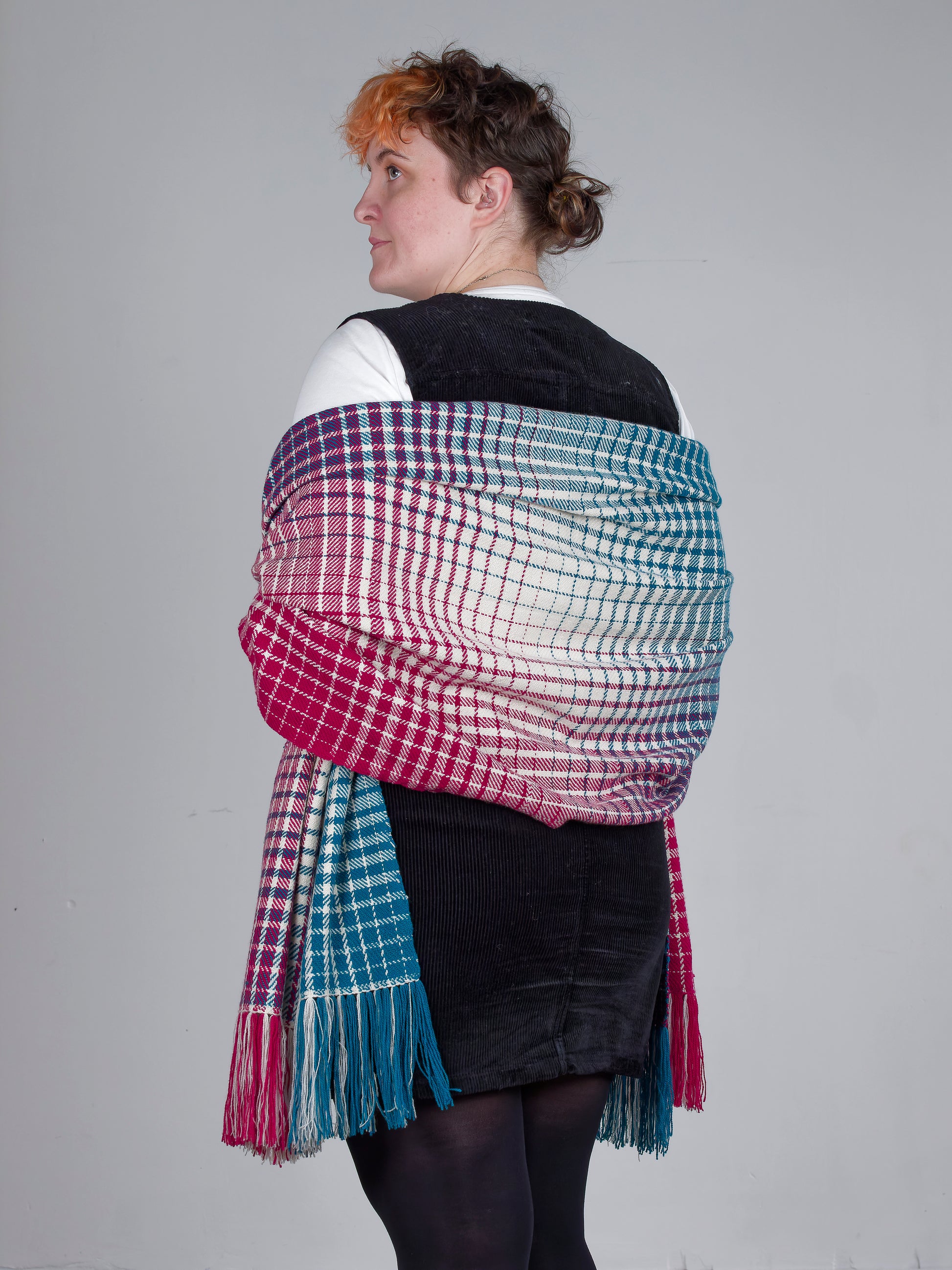 This wrap blends traditional craftsmanship with premium natural fibres. Soft, light, and generously sized, it takes over 20 hours to weave — each one is a unique expression of colour and care.